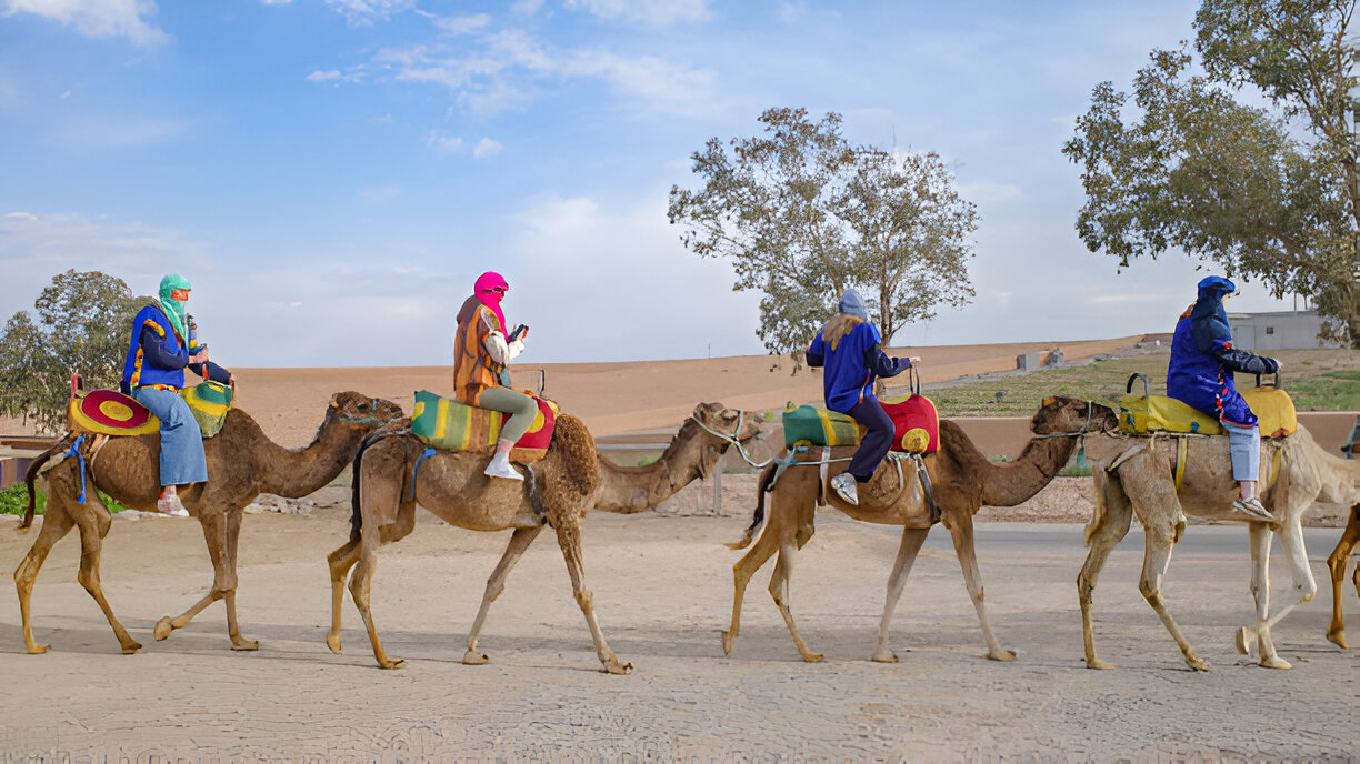 Vivez une journée complète d’évasion, d’aventure et de détente au cœur du désert d’Agafay avec une expérience unique combinant balade à dos de chameau, randonnée en quad, accès à la piscine et déjeuner marocain savoureux, à seulement quelques kilomètres de Marrakech.